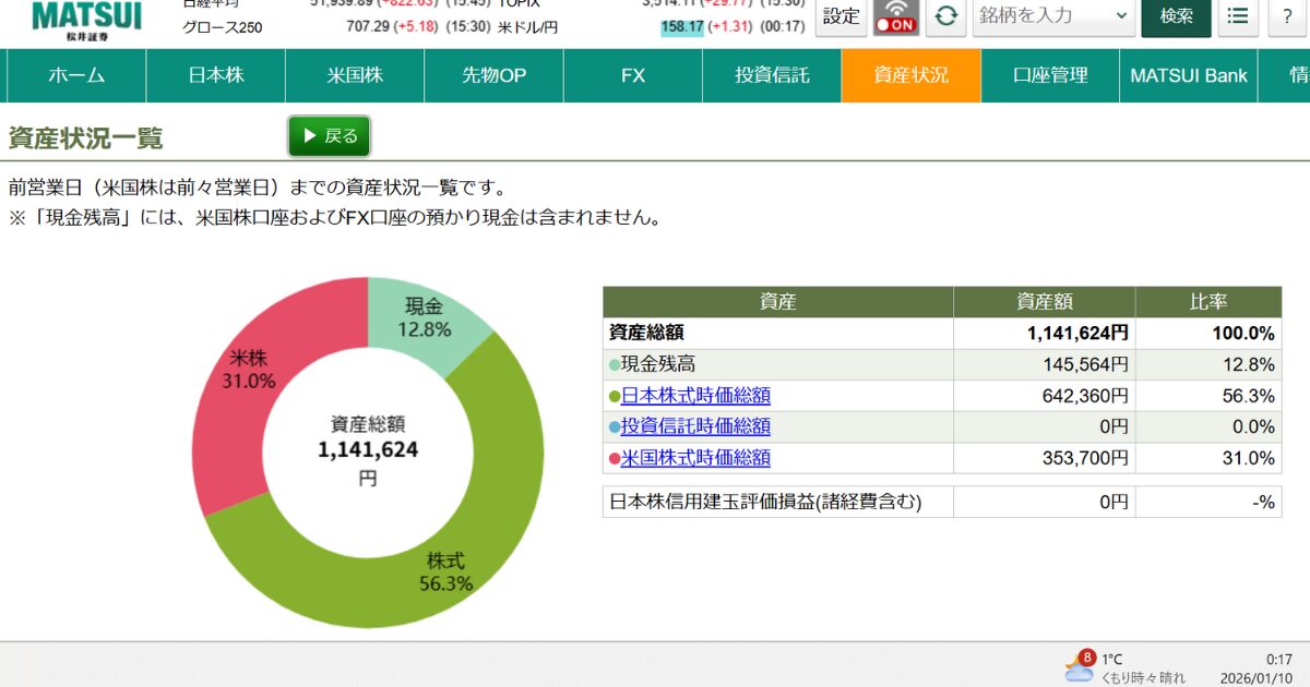 ※画像は月1回更新します。松井証券の資産状況一覧には米ドルは含まれない仕様となっているようです。